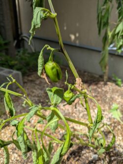 今年も猛暑が続き、苗も大きくならずほぼ枯れ気味のピーマンでしたが、