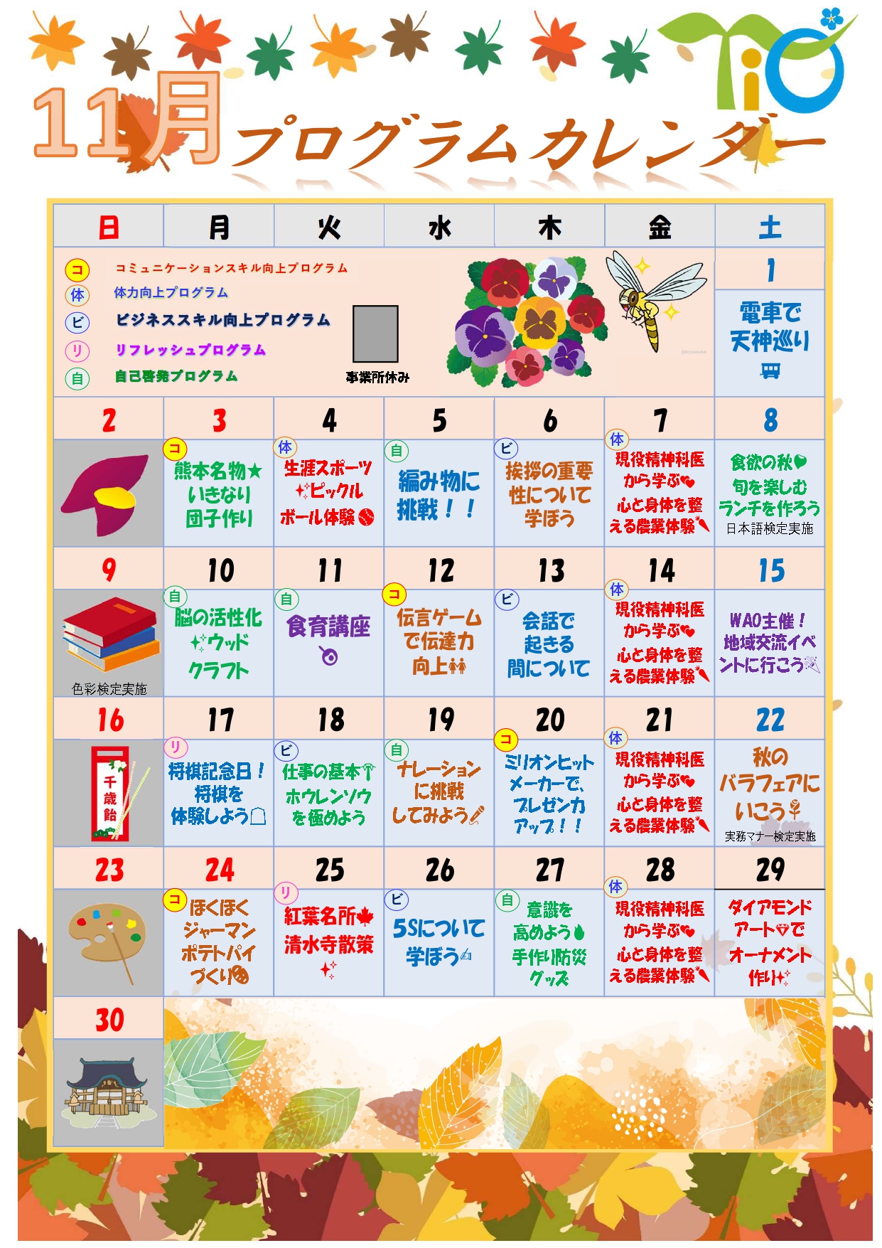 11月のプログラムカレンダーが完成しましたので、ご紹介します!