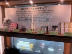 車内に柳川ブランドの珈琲やあまおうラーメンなどの展示がありました(・∀・)