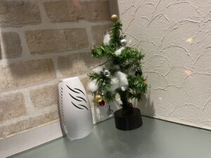 ミニツリーも設置しました!!隣は利用者さんが丹精込めて作られたクリスマスモチーフの折り紙なんんですが、とても楽しげな雰囲気が出ていますね🎄