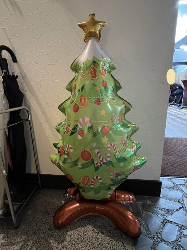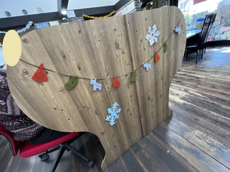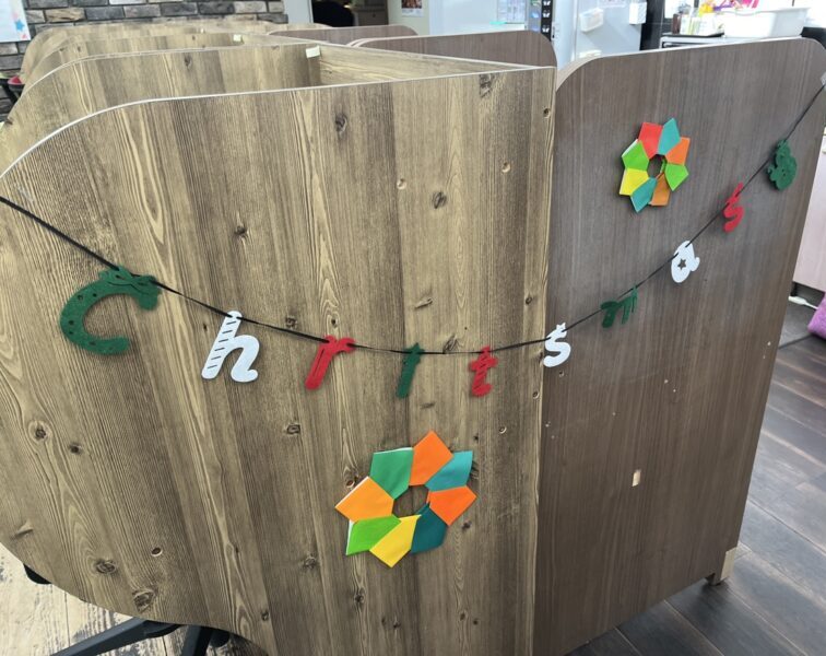 ミニツリーも設置しました!!隣は利用者さんが丹精込めて作られたクリスマスモチーフの折り紙なんんですが、とても楽しげな雰囲気が出ていますね🎄