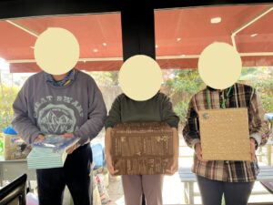 こちら1~3等を当てられた利用者さんです★生活に役立つ家電や必需品が入っていますので、是非とも活用してくださいね😊✨