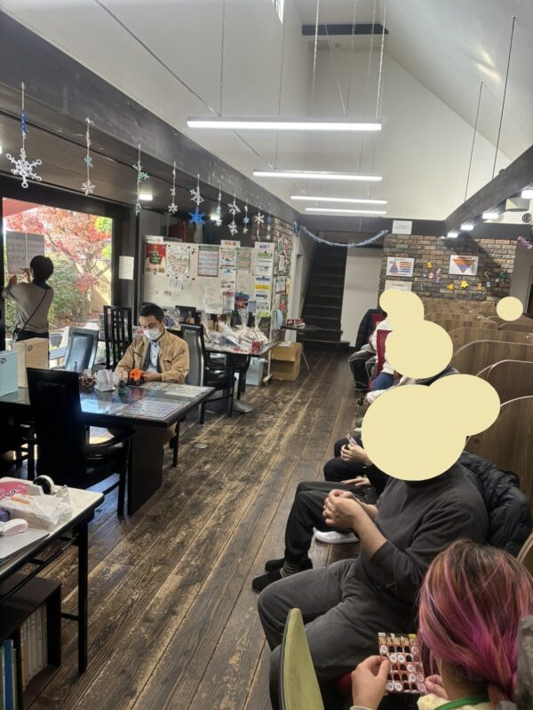 まずは恒例のゲーム大会です!!ワニワニパニック、黒ひげ危機一髪、ミニボーリング、トランプ、オセロ、カルタ…などなどパーティで楽しめる様々なゲームを用意しました!皆さん非常に楽しんでいたようです👀