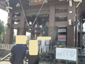 必経門と呼ばれる入口を入ると、正面に見えるのが「仁王門」「五十御堂」と呼ばれるこの2つです。参拝は五十御堂の1回で行われています。仁王門の両端には阿・吽という2体の銅像が立っています。