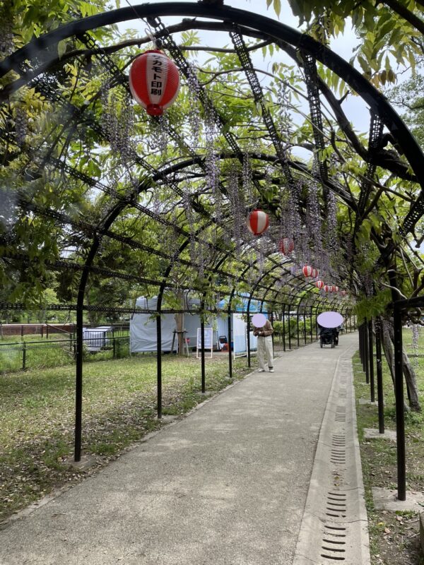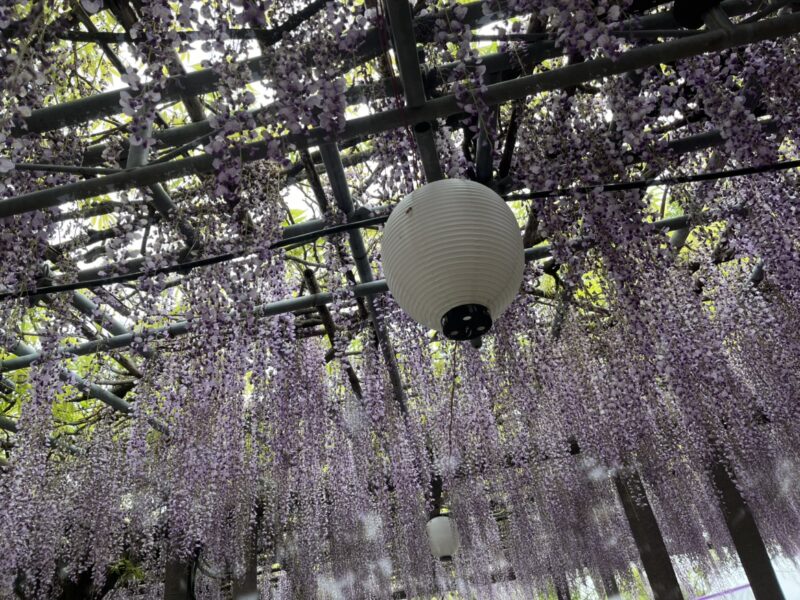藤棚に咲く満開の藤は本当に圧巻で、見ていると圧倒されます。夜になるとライトアップもあるようで、お客さんが多いのも納得ですね~