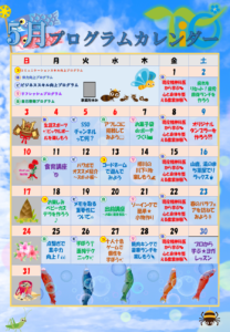 5月のプログラムカレンダーが完成しましたので、ご紹介します!!