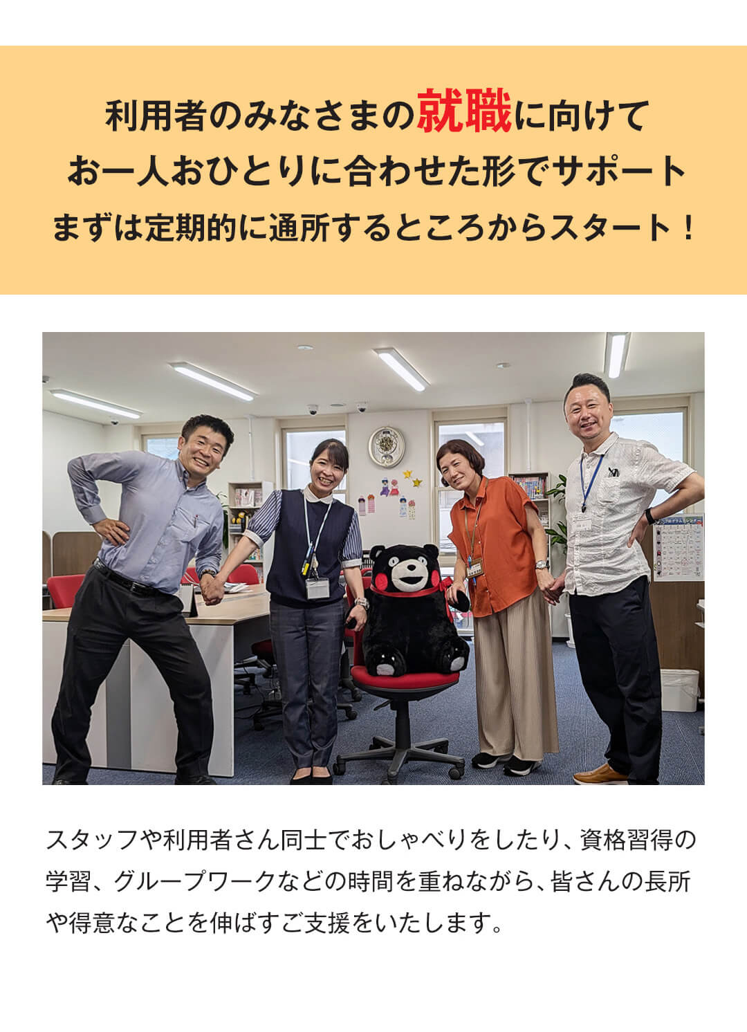 利用日や時間も自分のペースでOKです。まさにオーダーメードの就労支援を行っています。