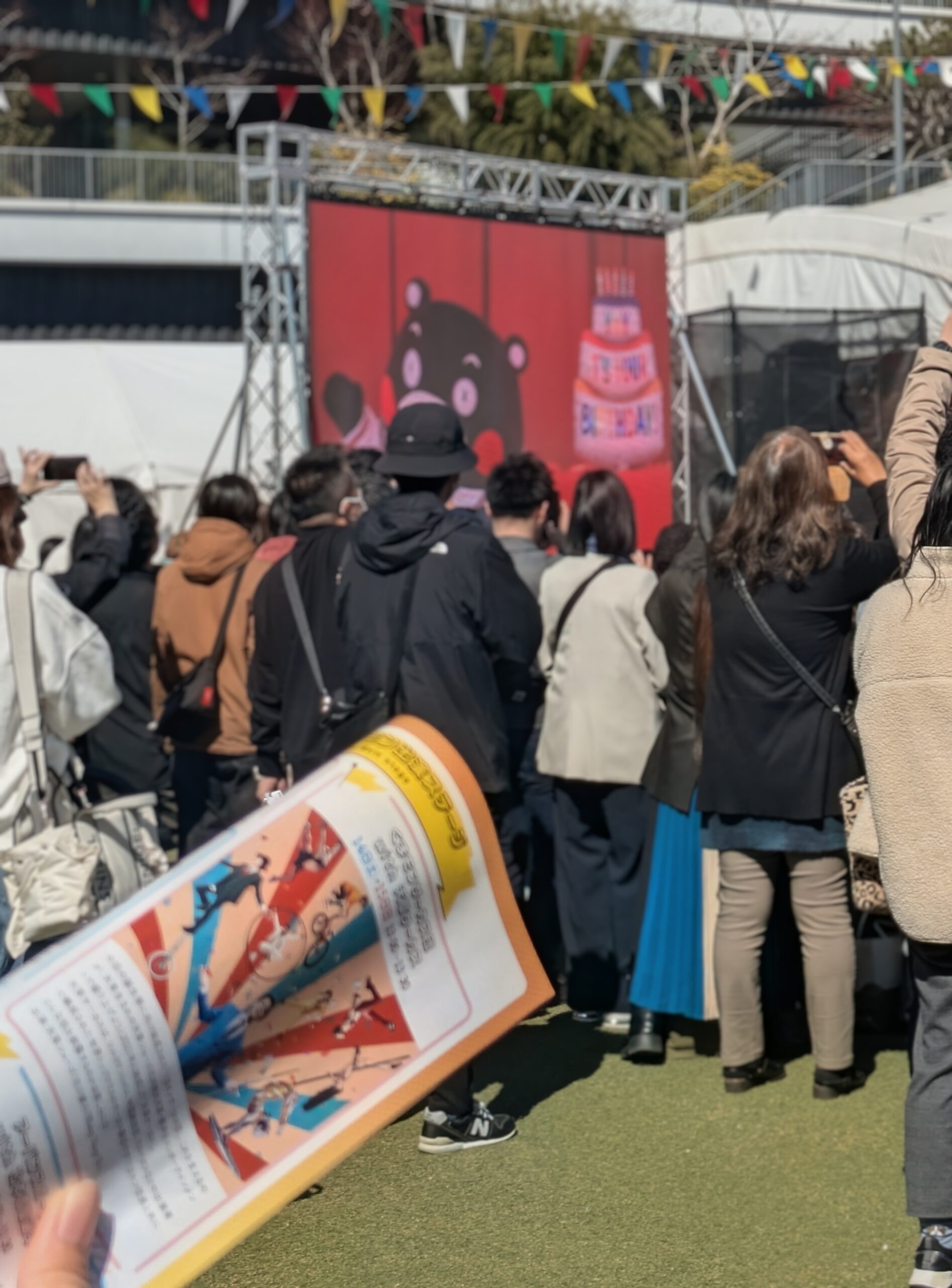 本日の熊本は雨模様で少しひんやりとしていますが、先週の土曜日(3月14日)は気持ちの良い快晴でした。事業所の近くにある花畑広場では、ちょうど「くまモン誕生祭」が開催されており、多くの人でにぎわっていました。
