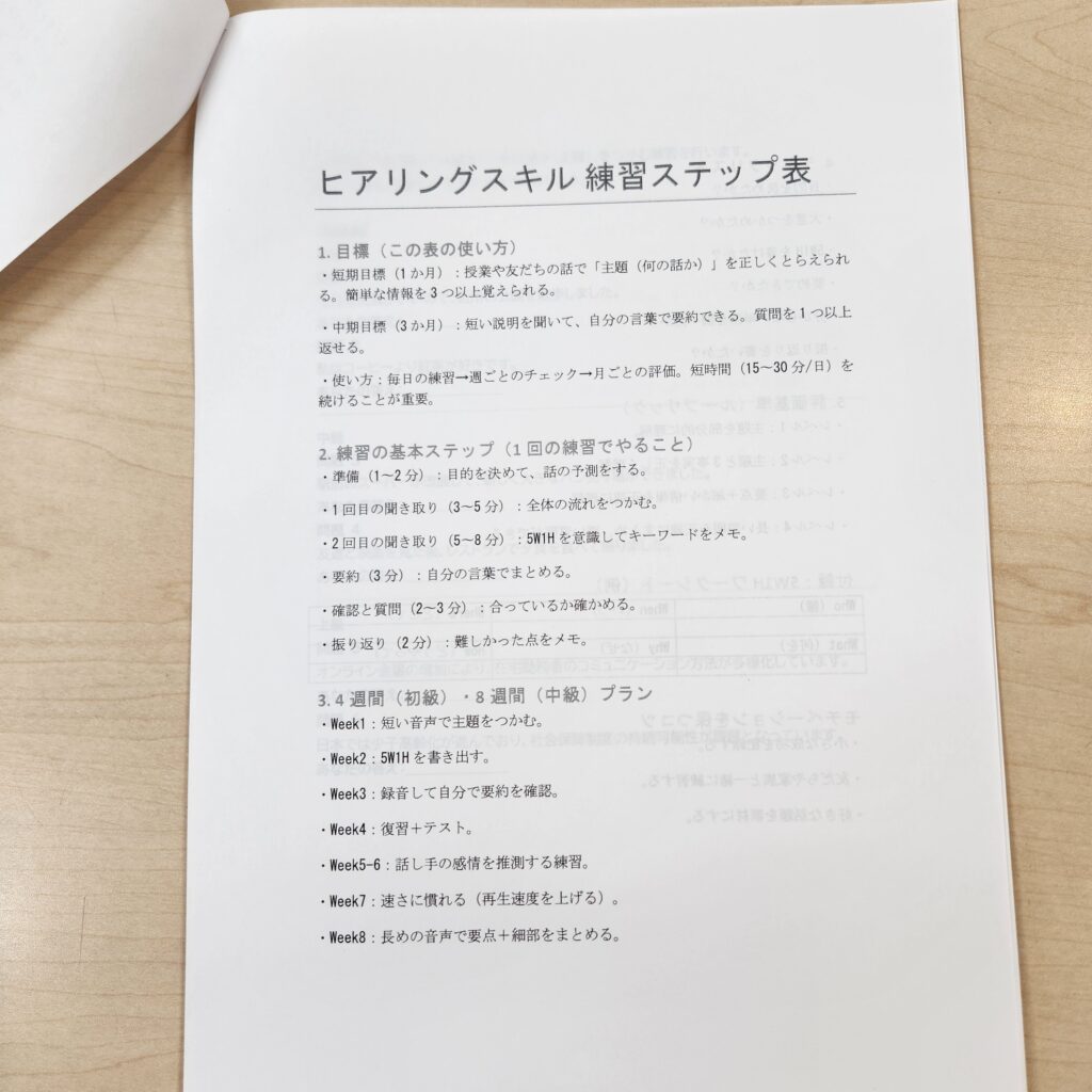 今回もオリジナルテキストを使って、どのようにしてヒアリングスキルを磨くのか学習ました♪