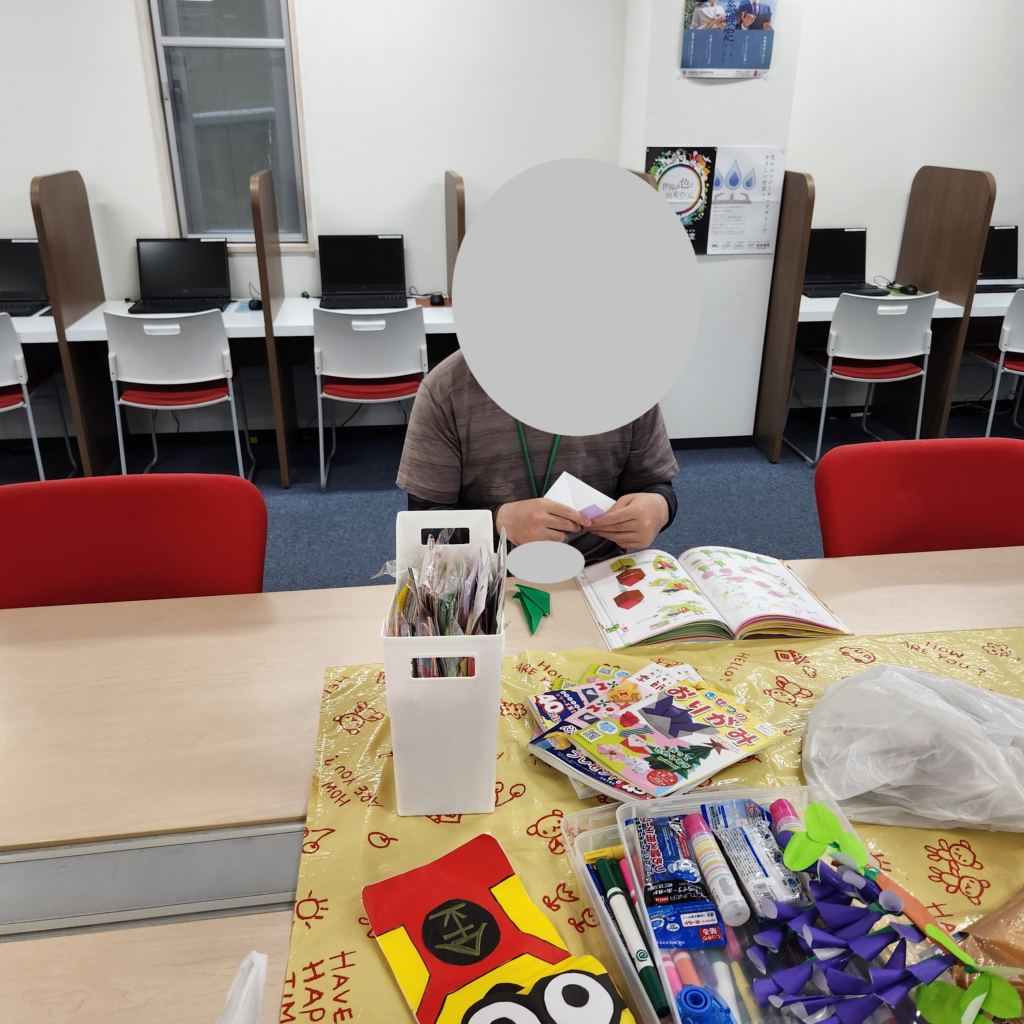 飾りのモチーフ作りは、春の花であるチューリップや5月を思わせる兜作りなど、形を整えたり貼り合わせたりと、集中力や手先の動きが求められる工程も多く、皆さんそれぞれのペースで丁寧に取り組まれていました。完成した作品は壁などに掲示しており、事業所内が季節を感じられる空間になっています。