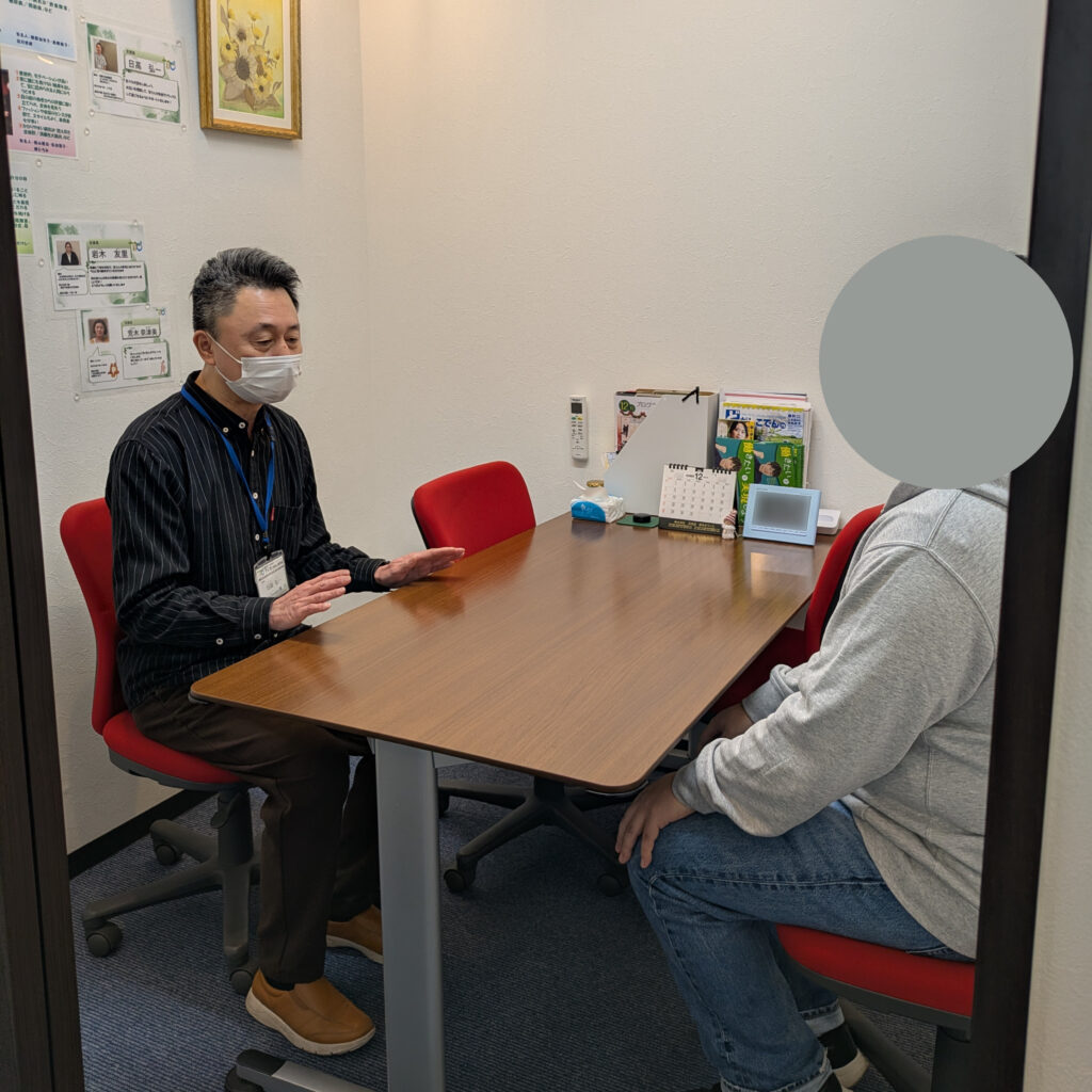 実際に来所して頂き、事業所の雰囲気を⾒てもらったり、お話を伺わせて頂きます。オンラインも可能です。
