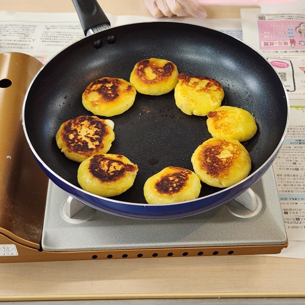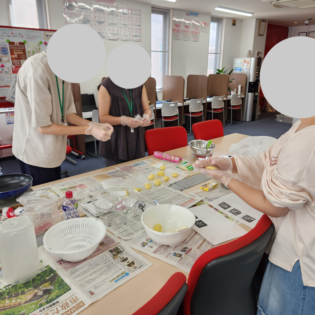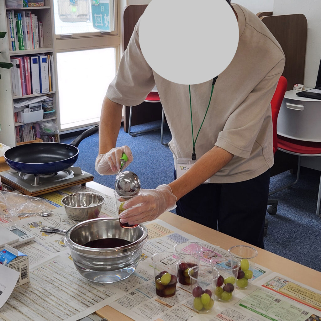 自由参加のプログラムで「さつま芋のチーズいももち」と「ぶどうのゼリー」を作りました(⌒∇⌒)
