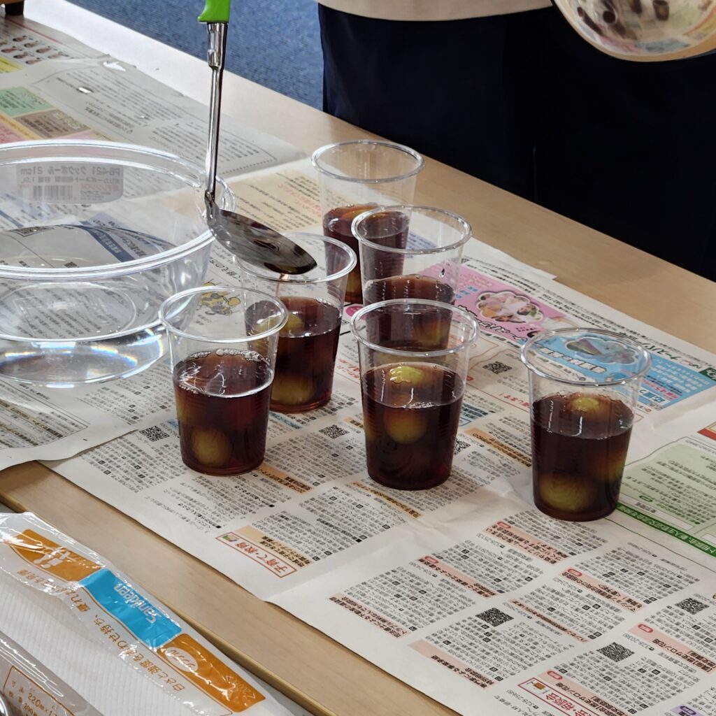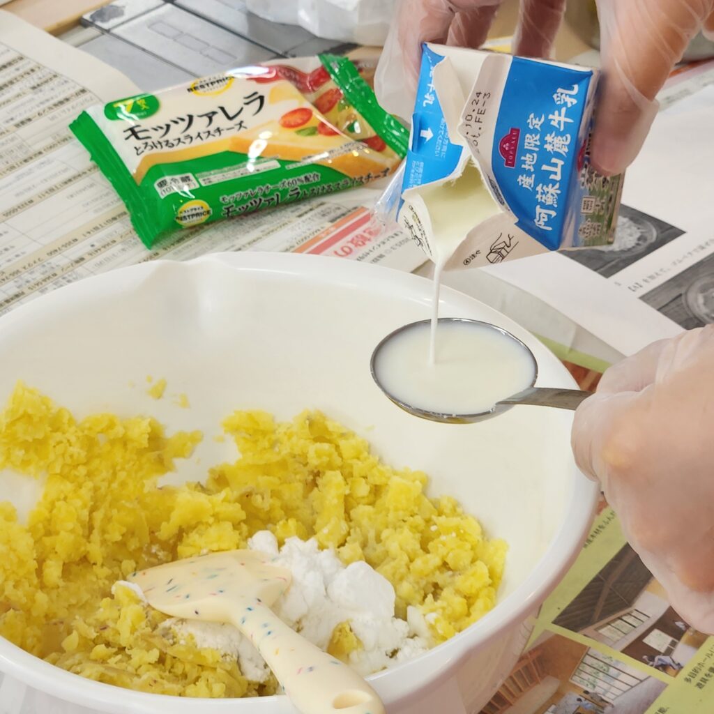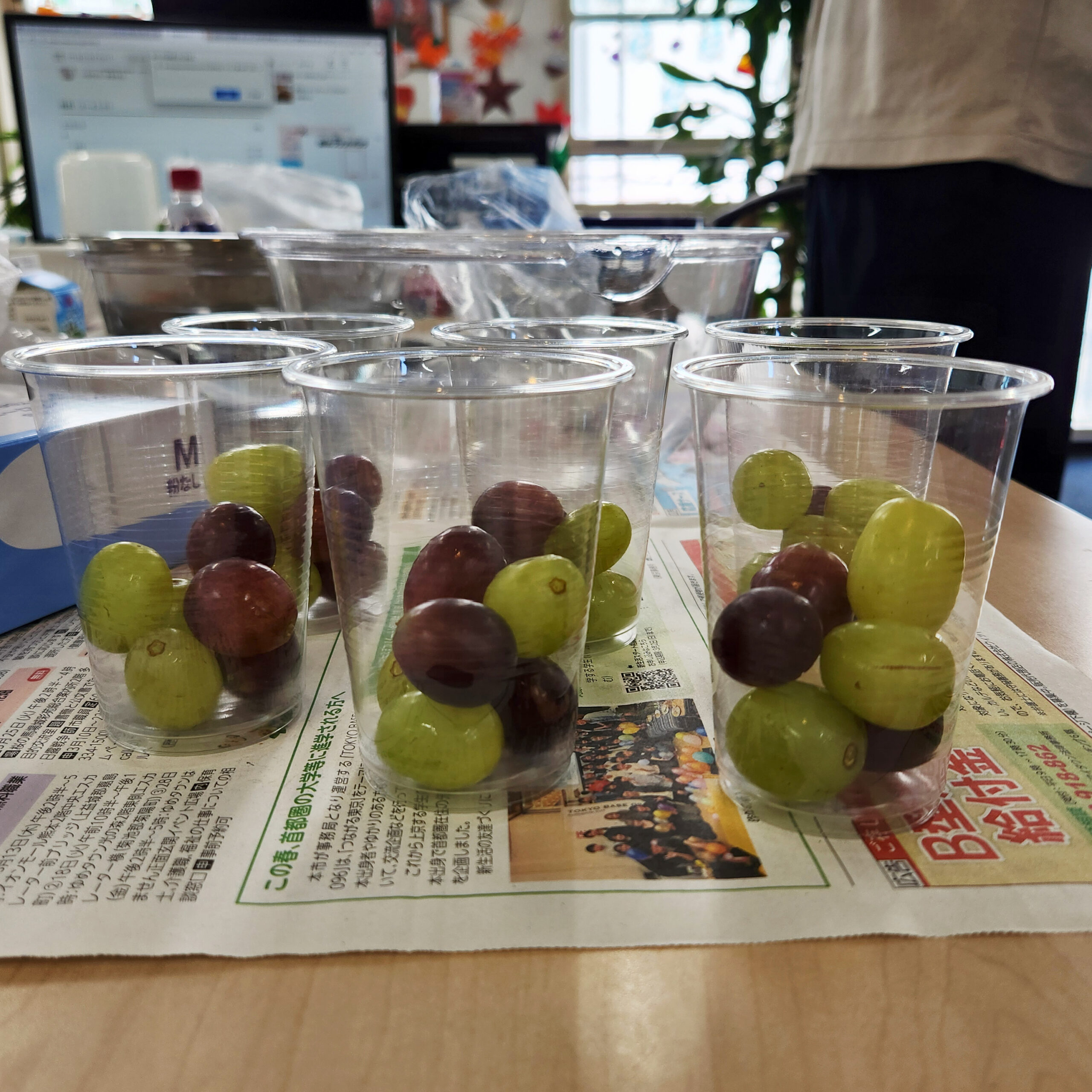 自由参加のプログラムで「さつま芋のチーズいももち」と「ぶどうのゼリー」を作りました(⌒∇⌒)