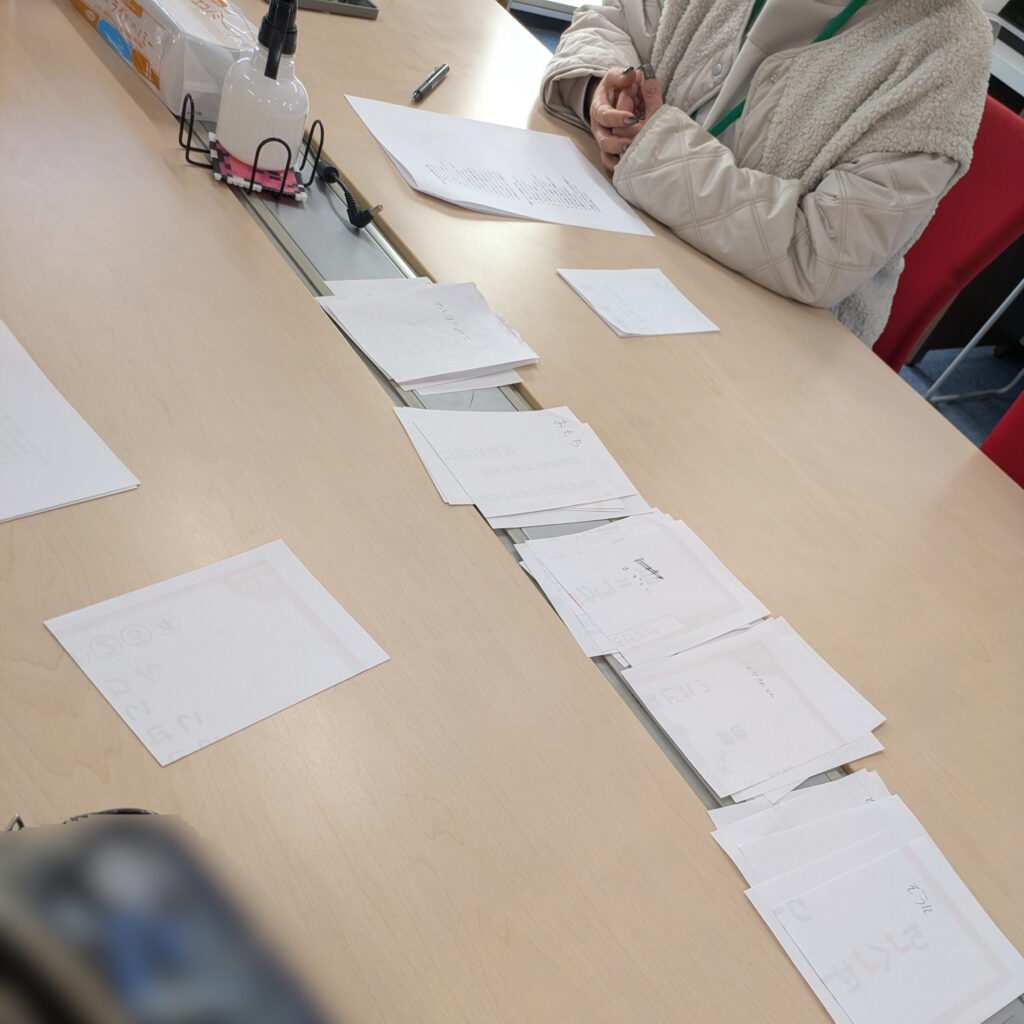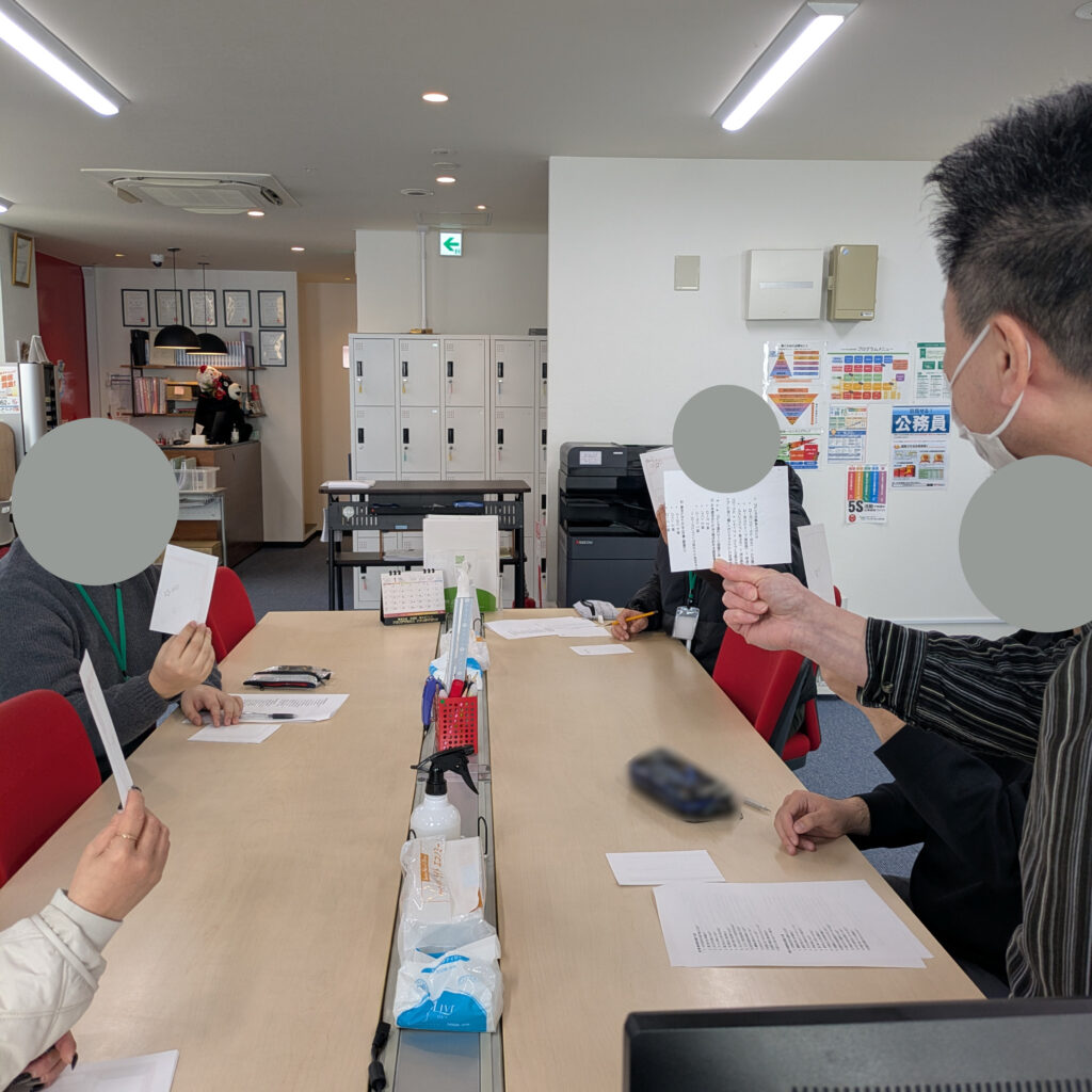 一度で揃うもの、全員違う回答だったり、半数に分かれたりと様々な考えがある事を身をもって体験できました。上手くまとめる、上手くまとまる。どちらも経験した利用者さん達。今後必ず役に立つスキルですよ⭐