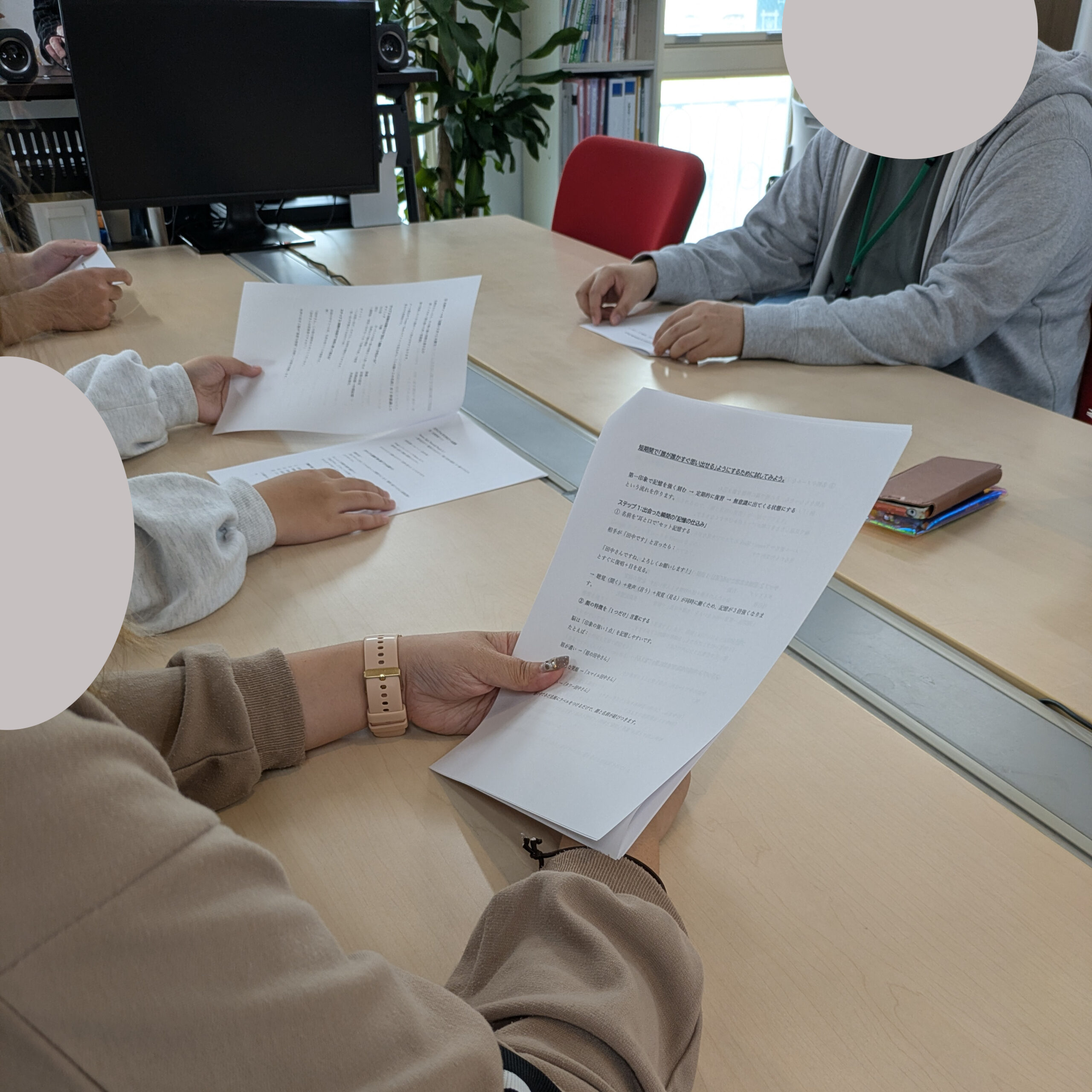 そんな、心に隙間風が吹くような思いを少しでも減らそうと、プログラムで利用者さんたちと顔と名前の関連付け(記憶法)について学びましたよ!