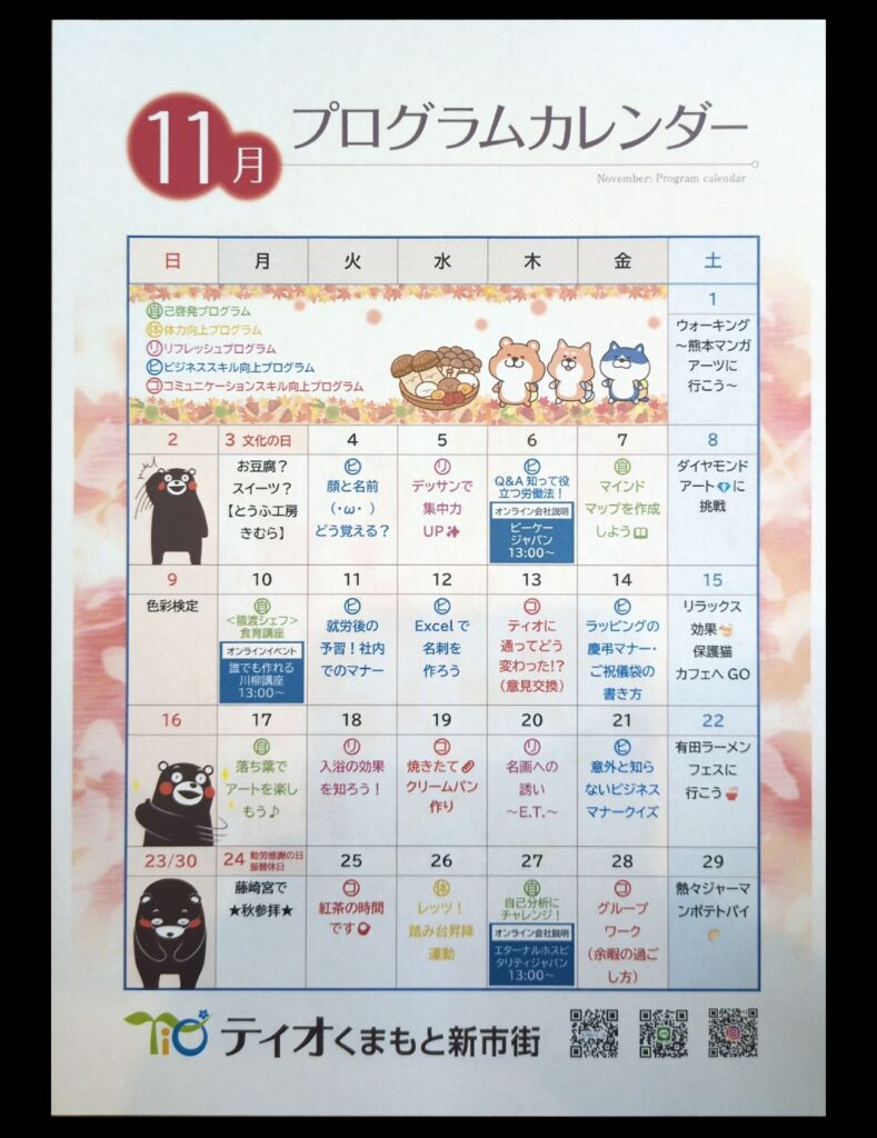 さて、遅くなりましたが11月カレンダーのお知らせです。